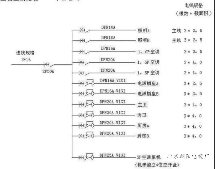 另外一條是廚房,滿足:照明、油煙機(jī)、燃?xì)鉄崴?、消毒柜、冰箱、微波爐同時(shí)使用。